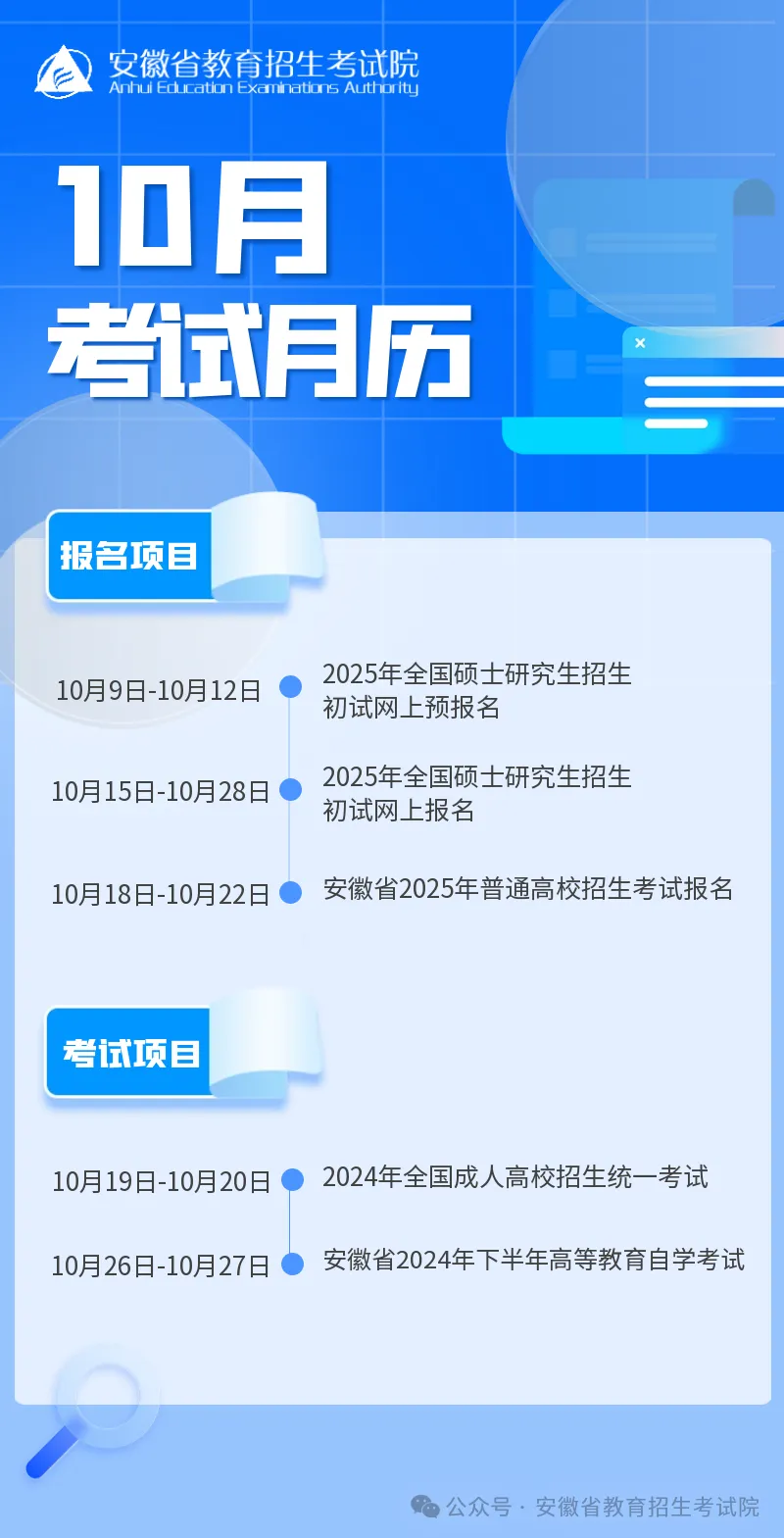 【考试月历】安徽省2024年10月教育招生考试月历