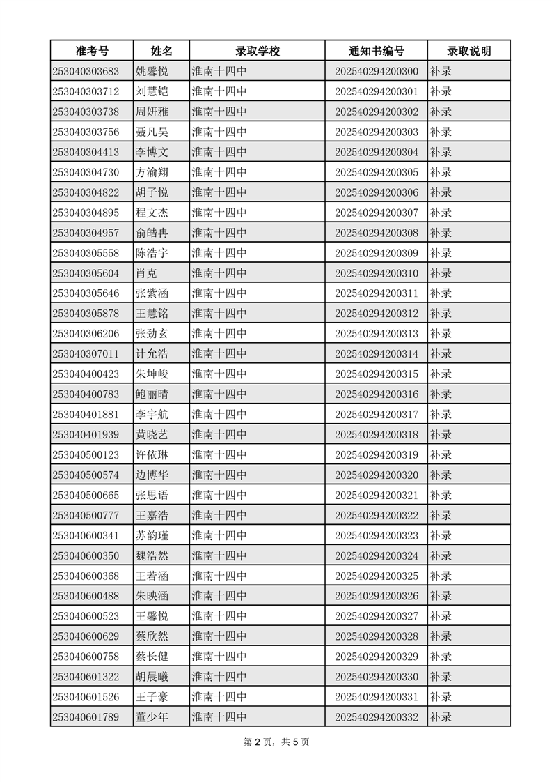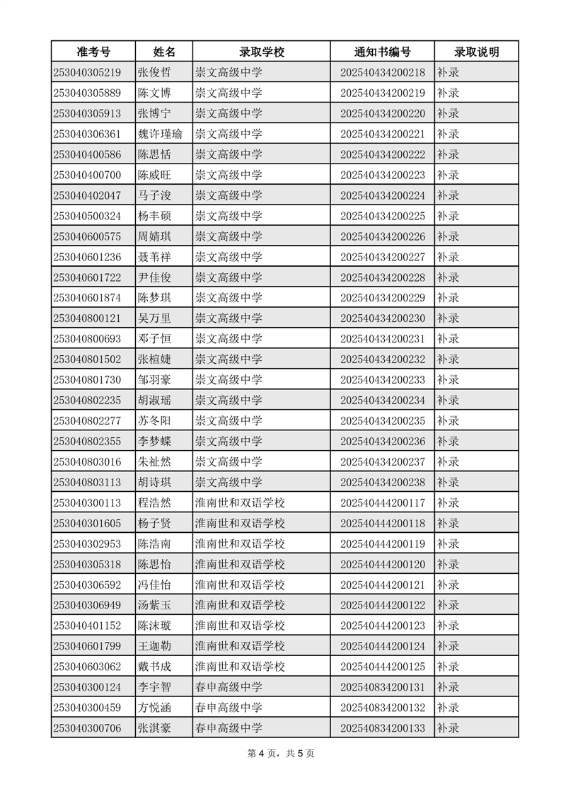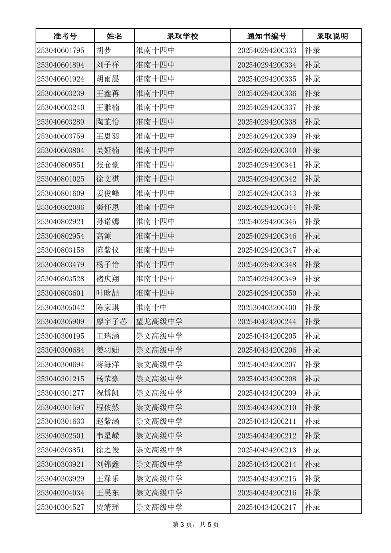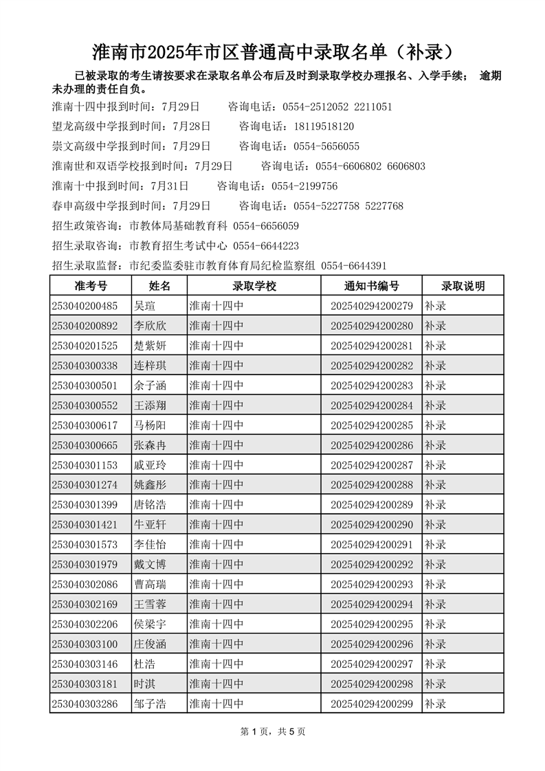 【补录名单】淮南市2025年市区普通高中录取名单(补录)