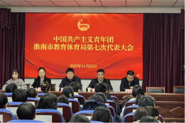 小雪初至天未寒,暖阳聚力启新篇。中国共产主义青年团淮南市教育体育局第七次代表大会于11月25日上午在淮南市财政局一楼会议室召开。共青团淮南市委副书记连涛,淮南市教育体育局党委委员、副局长徐朝旺,共青团淮南市委组织部部长杨静,驻市教体局纪检监察组副组长熊国贵出席会议。来自局机关、市属学校的110余名团代表齐聚一堂,为淮南青年事业发展擘画新蓝图。