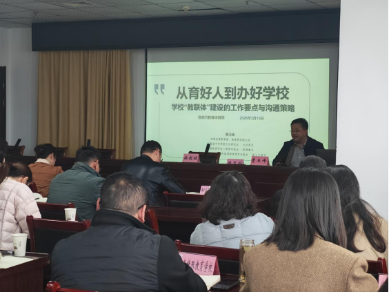 为深入贯彻落实国家关于家校社协同育人的政策精神,扎实推进“教联体”建设,2026年3月13日下午,淮南市教育体育局组织召开全市2026年“教联体”建设工作推进会。会议由市教体局主办,邀请国内知名教育专家作专题报告,全市各县区教育主管部门分管领导、业务负责人,各市属学校分管领导及部门负责人等齐聚一堂,共商协同育人新路径。