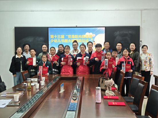 活动伊始,区关工委与教体局领导共同为省、市级少儿书画活动获奖学生代表、指导教师代表颁奖,并为区教体局颁发“安徽省第十三届‘党是阳光我是苗’少幼儿书画大赛优秀组织奖”。凭借多年高参与度、广覆盖面及优质推荐作品,区教体局已连续多届获此殊荣,充分彰显其在统筹青少年艺术教育、搭建优质展示平台上的扎实成效。