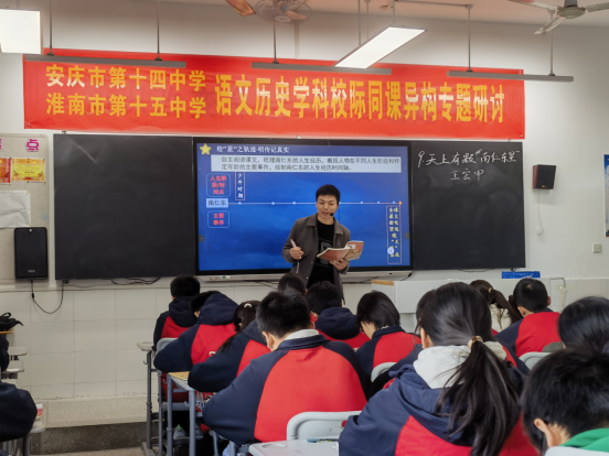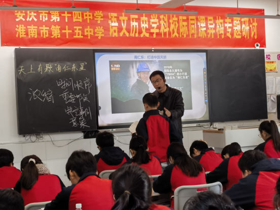 在上午的教研环节中,语文与历史学科率先开展“同课异构”教学交流。来自淮南十五中王宫楠、吴珊与安庆十四中刘方、陈竹燕,围绕八年级语文《天上有颗“南仁东星”》和九年级历史《探寻新航路》进行教学展示。授课教师基于课程标准,从教材解读、目标设定到教学过程开展了各具特色的教学设计,通过启发式、探究式等教学方法,引导学生深度参与课堂,展现了扎实的教学功底和独特的教学风格。