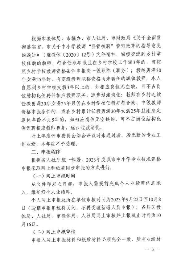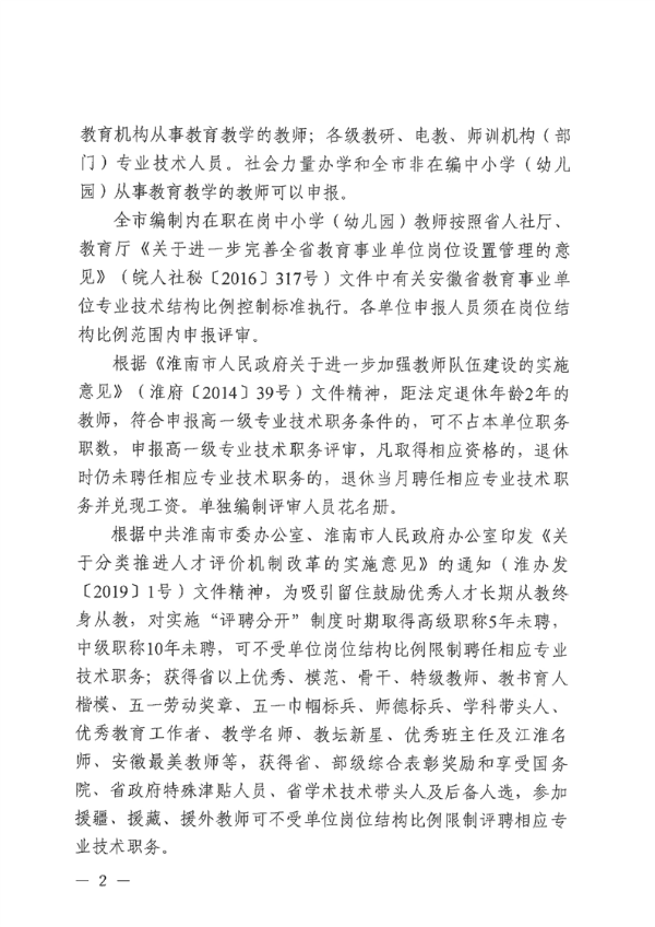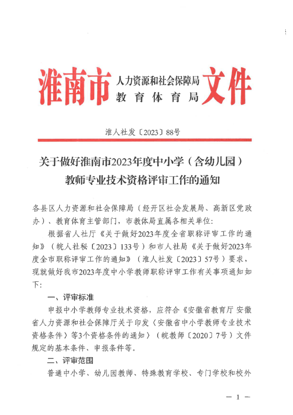 关于做好淮南市2023年度中小学(含幼儿园)教师专业技术资格评审工作的通知(淮人社发〔2023〕88号)